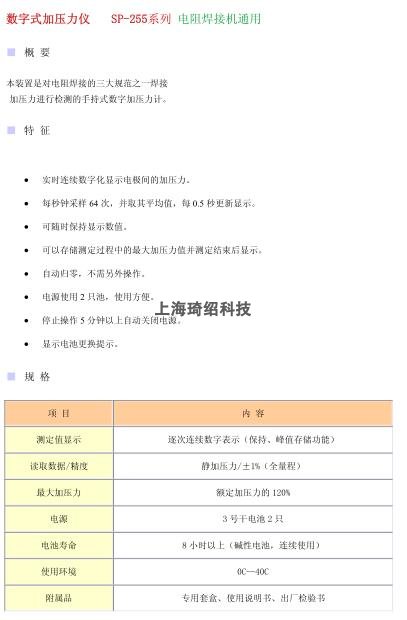 SP-255-FU10KN焊接壓力檢測儀